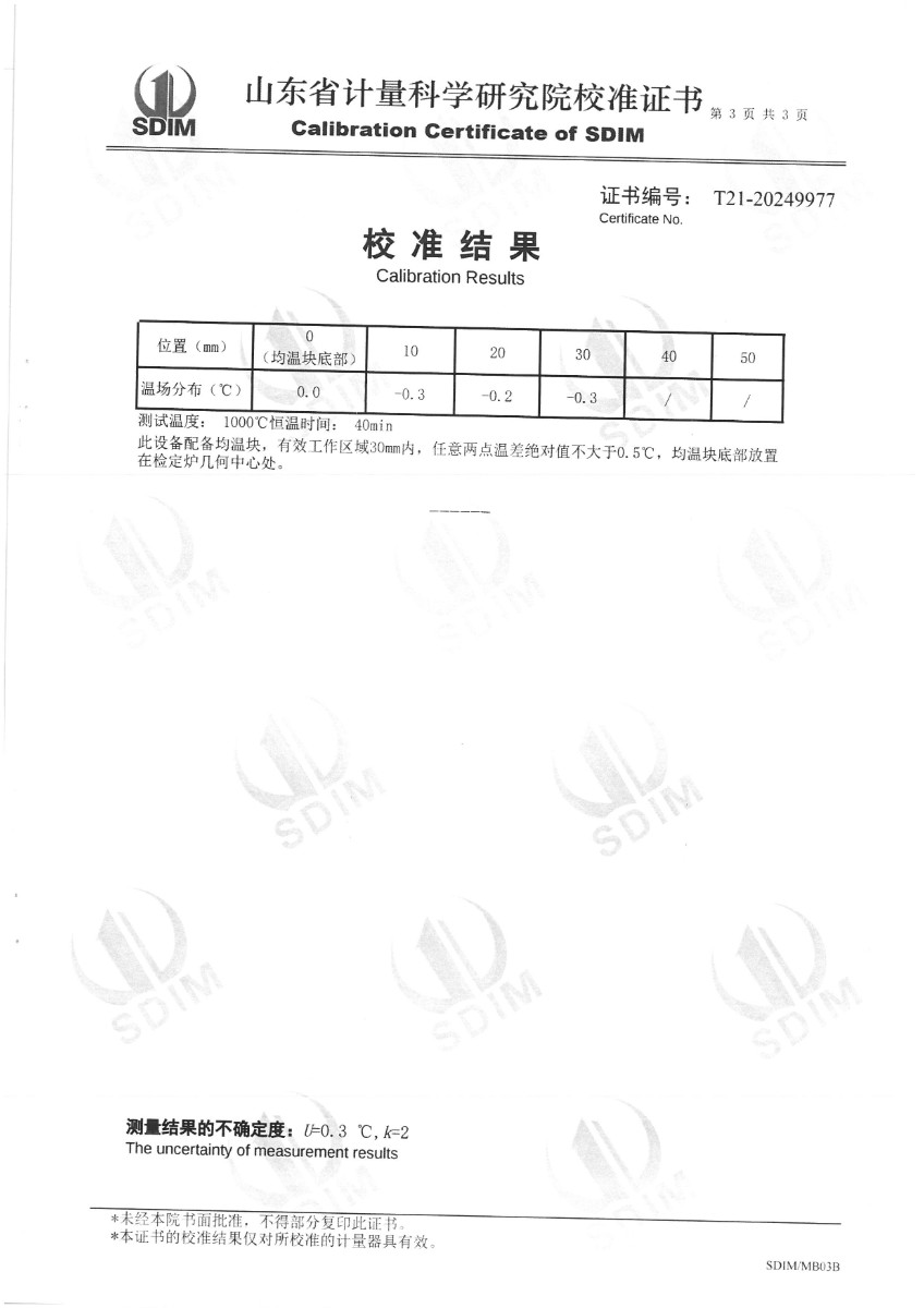 廉金屬熱電偶檢定爐(300~1200℃)校準證書(shū)