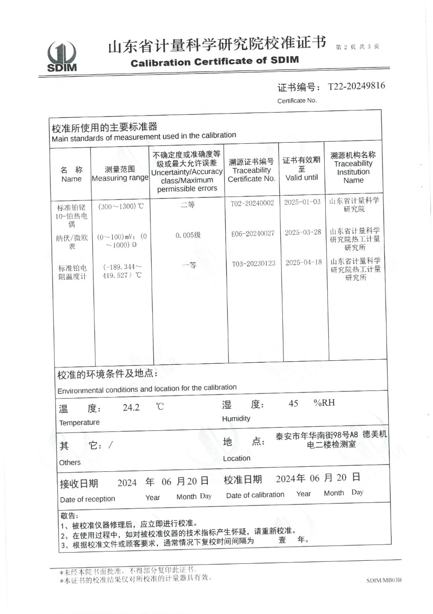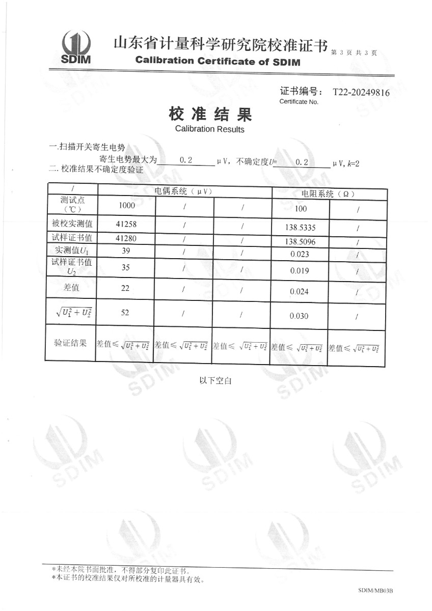 | 上一條:廉金屬熱電偶檢定爐(300~1200℃)校準證書(shū) | 下一條:智能干體儀(六位半精度)校準證書(shū) |