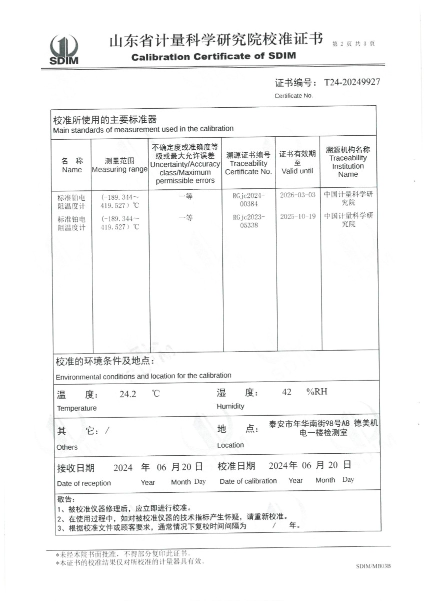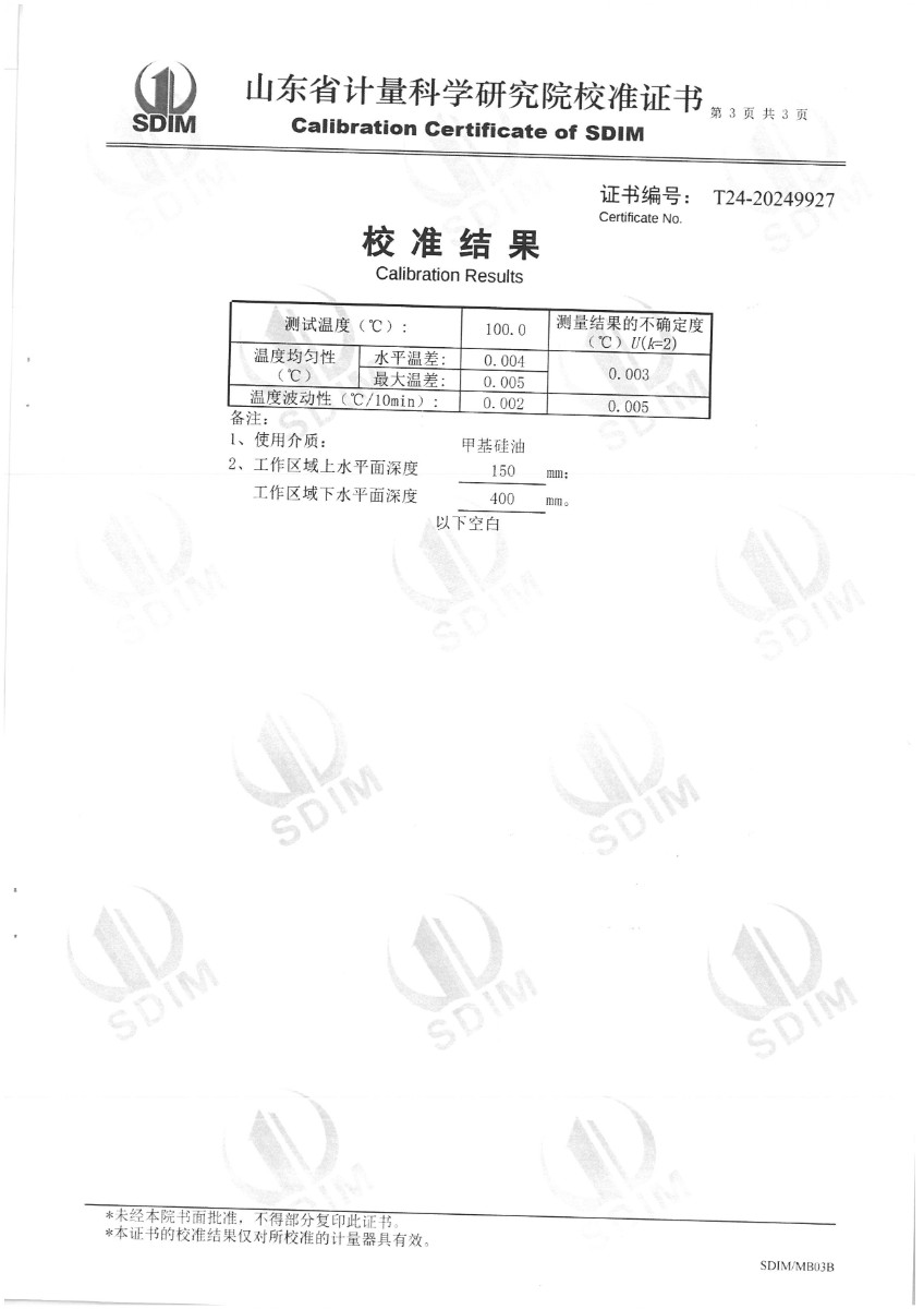 高精度恒溫油槽(90~300℃)校準證書(shū) 2024-6-26 本文被閱讀 5909 次