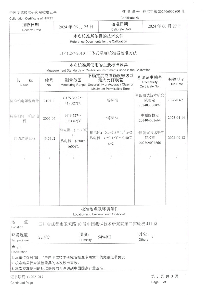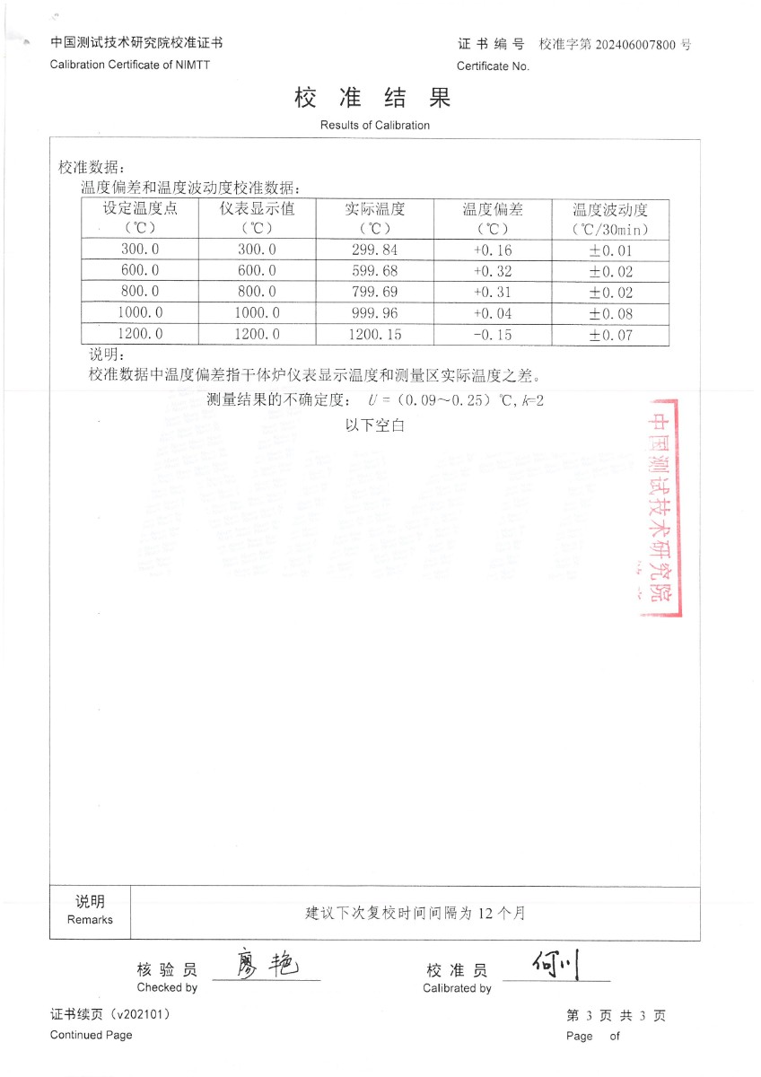 | 上一條:低溫干體爐(-30~150℃)校準證書(shū) | 下一條:溫濕度檢定箱(-5~65℃)校準證書(shū) |