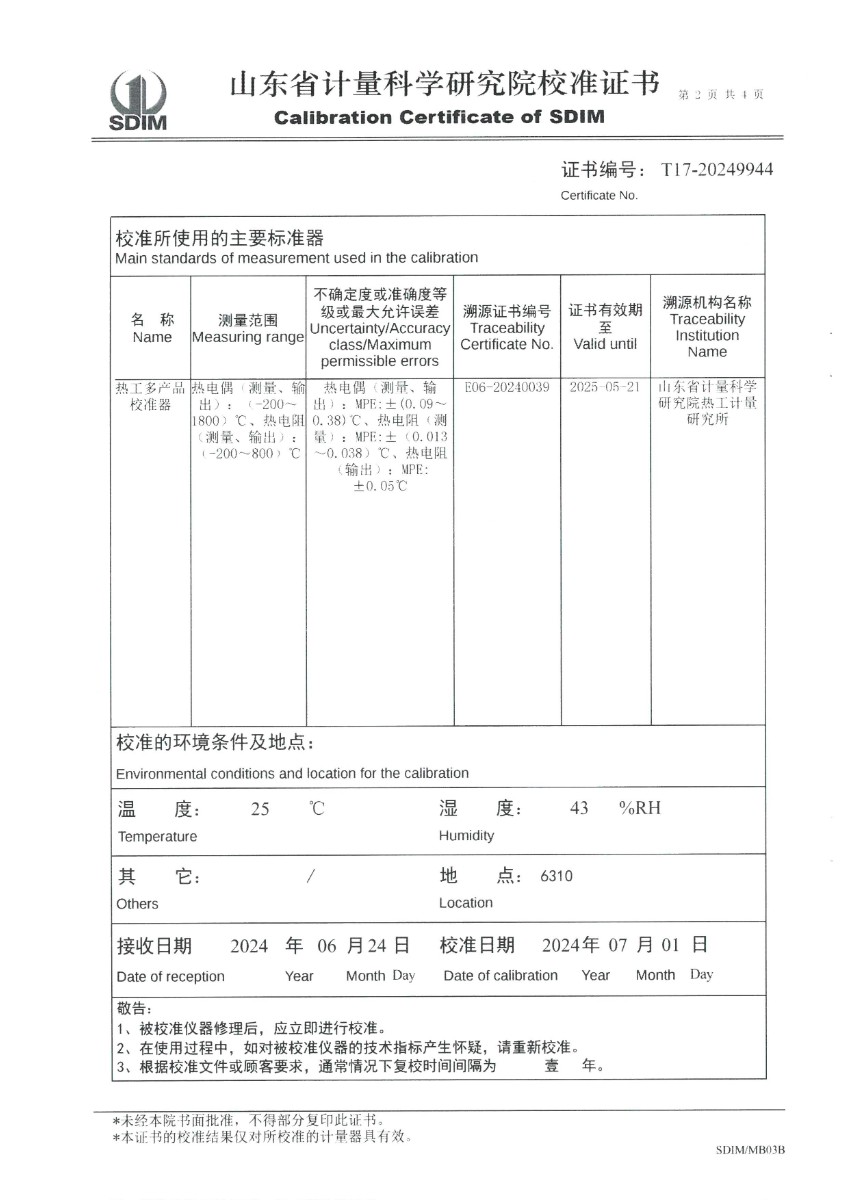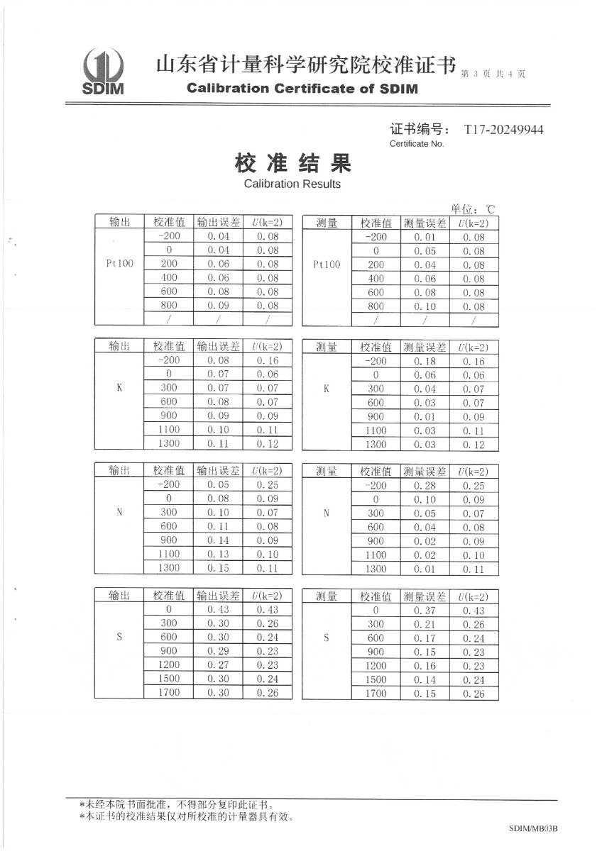 便攜式過(guò)程校驗儀(-200~1800℃)校準證書(shū) 2024-7-5 本文被閱讀 6209 次