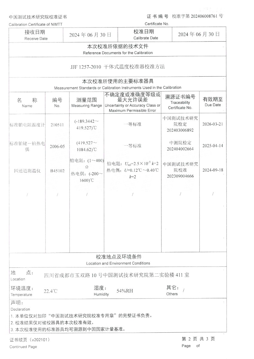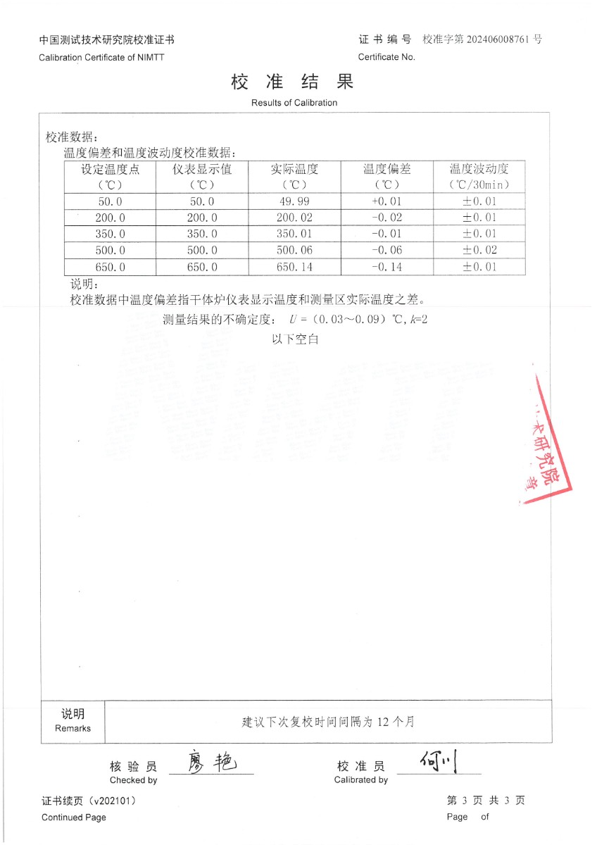 中溫干體爐295(50~650℃)校準證書(shū) 2024-7-6 本文被閱讀 6443 次