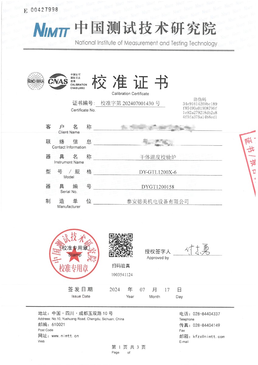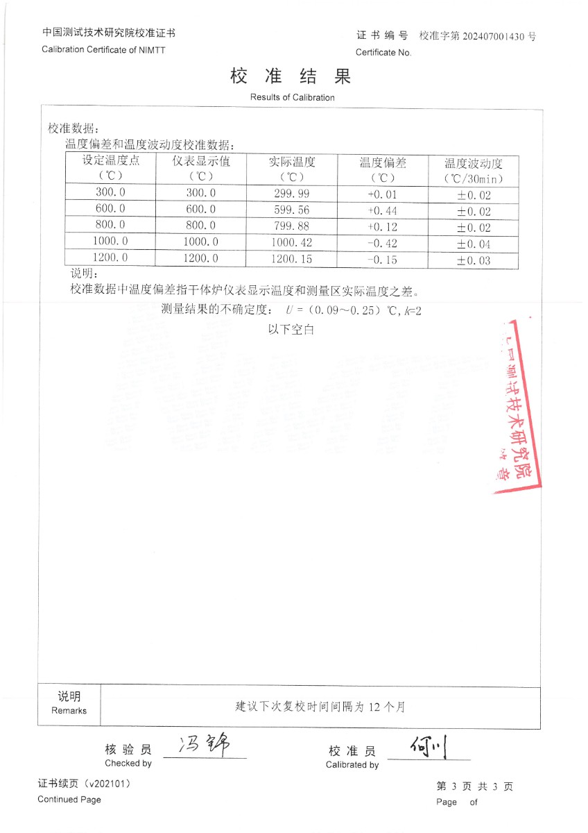 干體爐(300~1200)校準證書(shū) 2024-7-19 本文被閱讀 6665 次