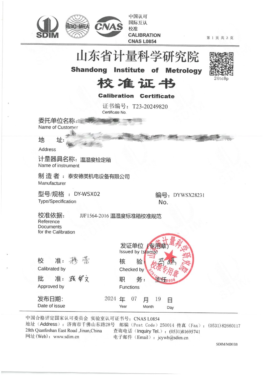 溫濕度檢定箱(-20~70℃)校準證書(shū) 2024-7-20 本文被閱讀 7589 次