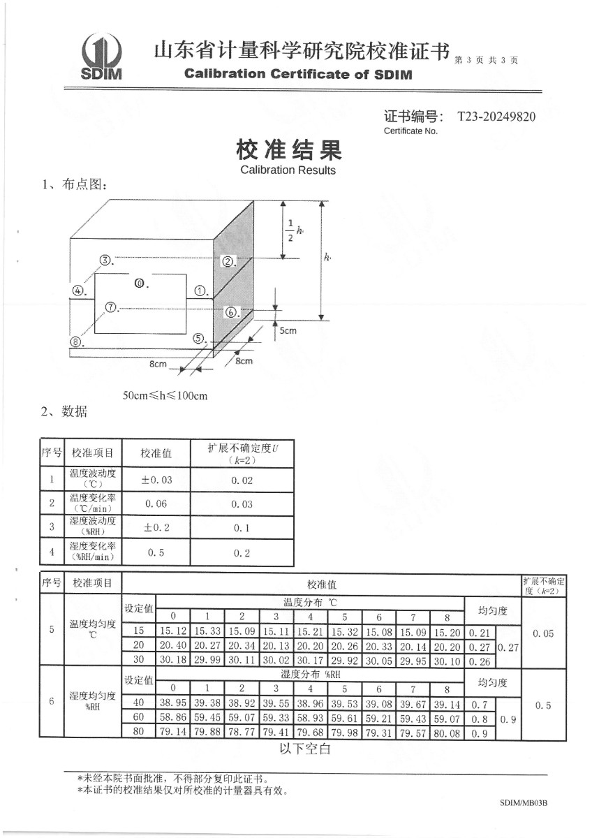 溫濕度檢定箱(-20~70℃)校準證書(shū)