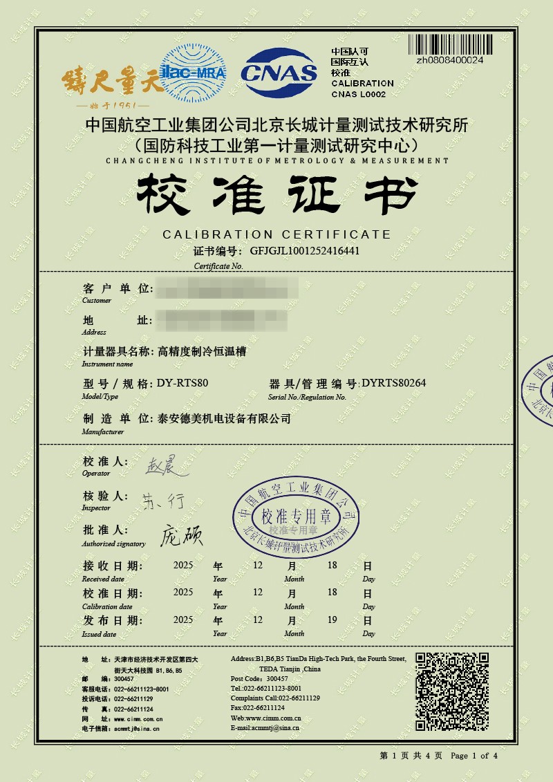高精度制冷恒溫槽(-80~100℃)校準證書(shū) 2025-12-19 本文被閱讀 12 次