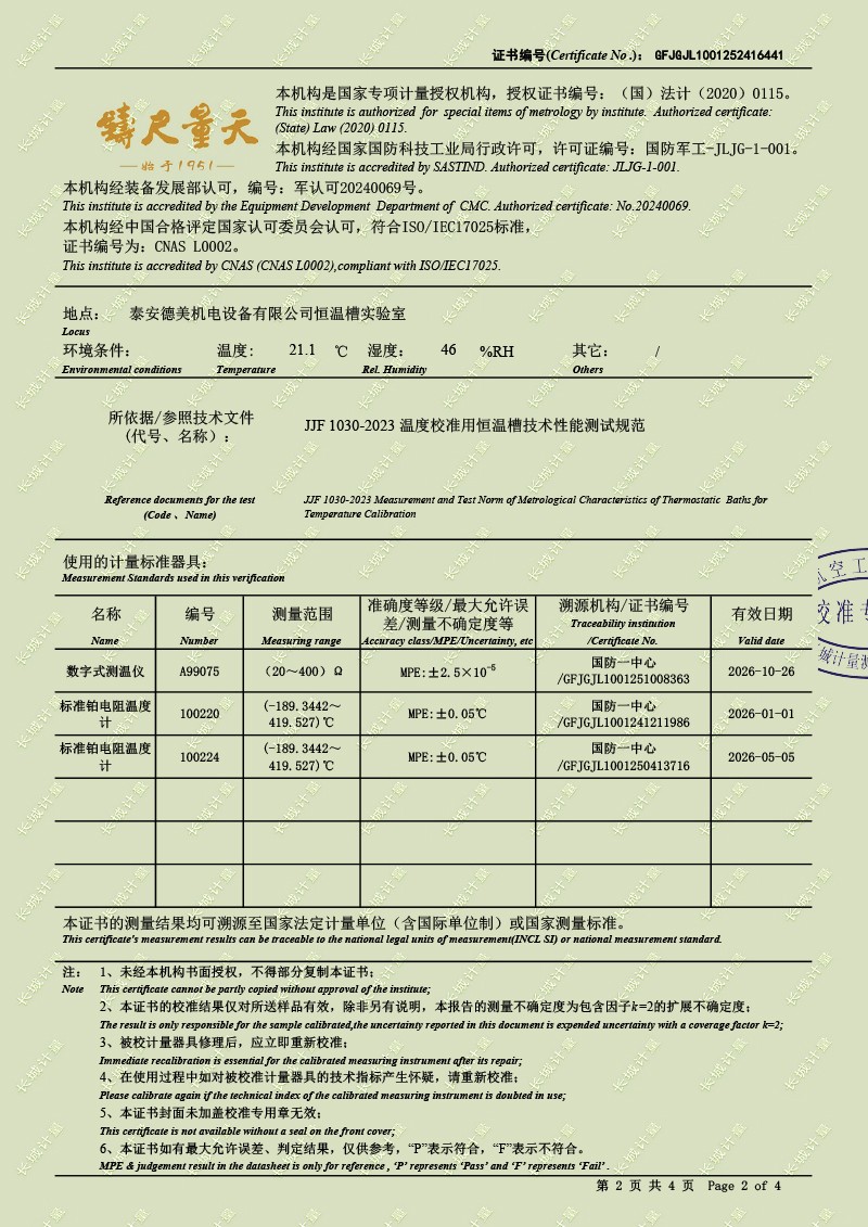 高精度制冷恒溫槽(-80~100℃)校準證書(shū)