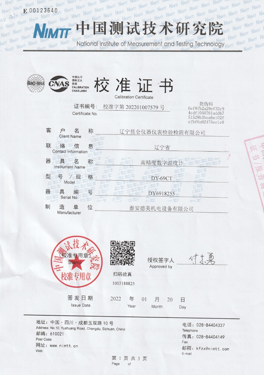 遼寧昆侖儀器儀表檢驗檢測有限公司-高精度數字溫度計 2022-2-15 本文被閱讀 13608 次
