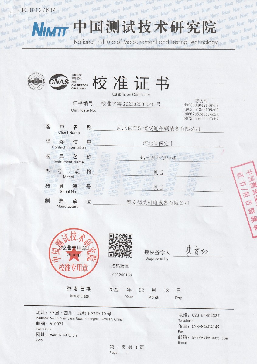 | 上一條:河北京車(chē)軌道交通車(chē)輛裝備有限公司-零點(diǎn)恒溫器 | 下一條:智能干體儀(六位半精度)校準證書(shū) |