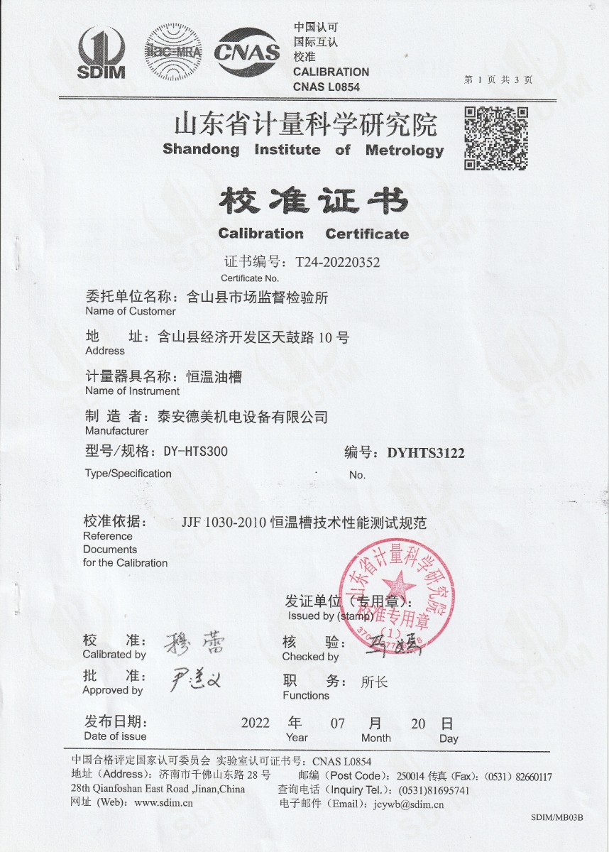 | 上一條:含山縣市場(chǎng)監督檢驗所-水三相點(diǎn)瓶?jì)鲋票4嫜b置 | 下一條:智能干體儀(六位半精度)校準證書(shū) |
