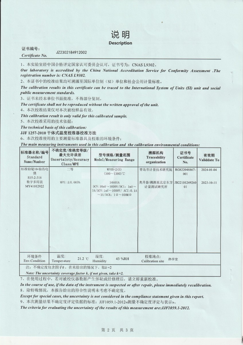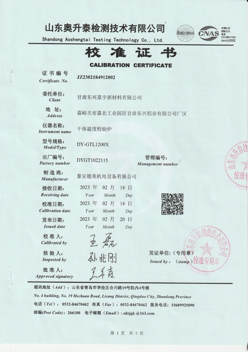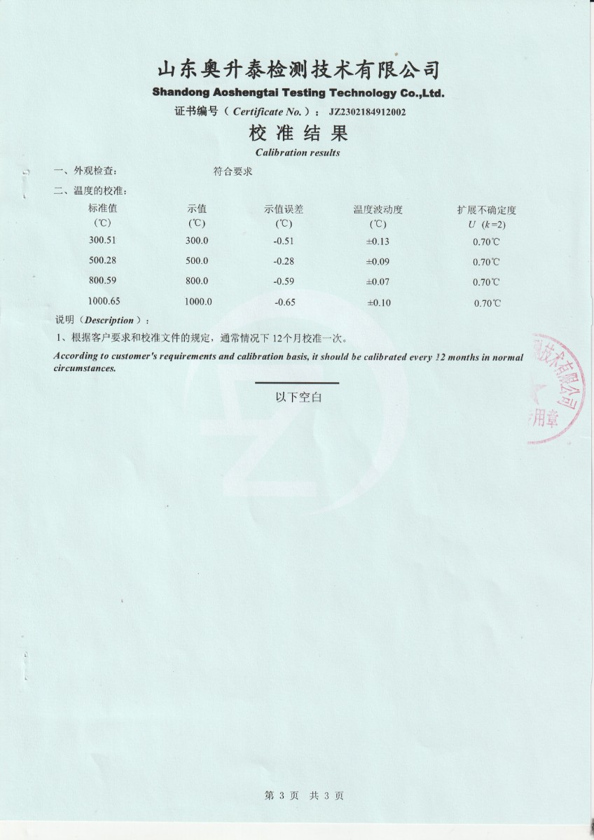 | 上一條:甘肅東興嘉宇新材料有限公司 干體溫度校驗爐 校準證書(shū)(1) | 下一條:零點(diǎn)恒溫器校準證書(shū) |