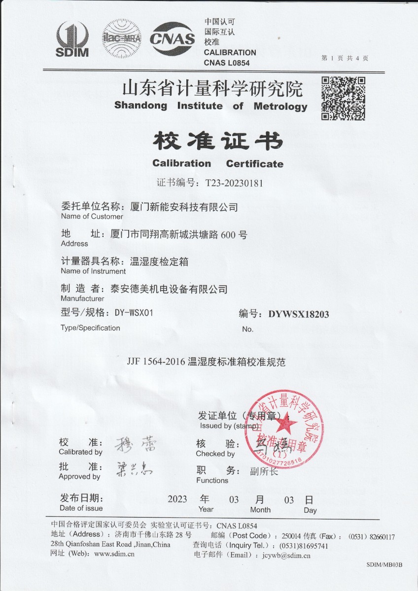 | 上一條:西安楊森制藥有限公司 溫濕度檢定箱 校準證書(shū) | 下一條:智能干體儀(六位半精度)校準證書(shū) |