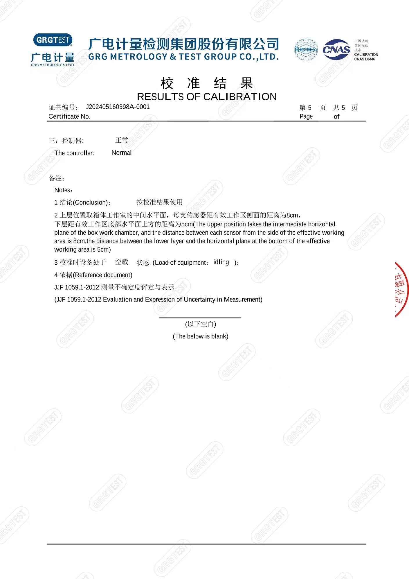 | 上一條:零點(diǎn)恒溫器(0℃±0.1℃)校準證書(shū) | 下一條:智能干體儀(六位半精度)校準證書(shū) |