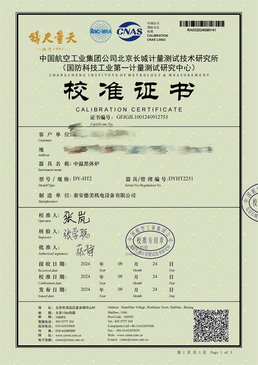 中溫黑體爐(50-500℃)校準證書(shū) 2024-10-17 本文被閱讀 5611 次