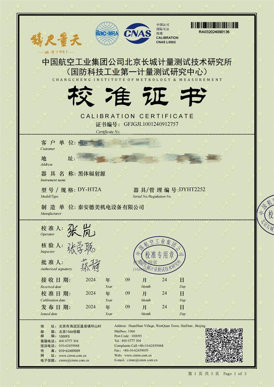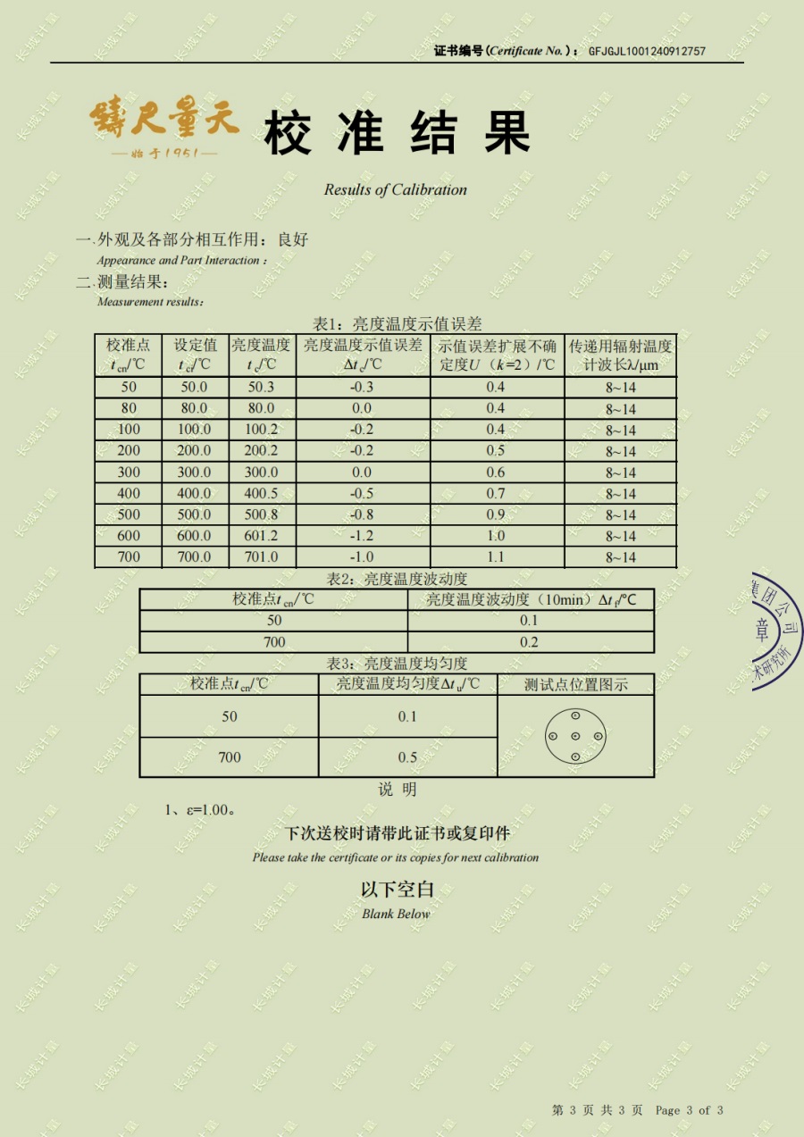 黑體輻射源(50-700℃)校準證書(shū) 2024-10-17 本文被閱讀 5954 次