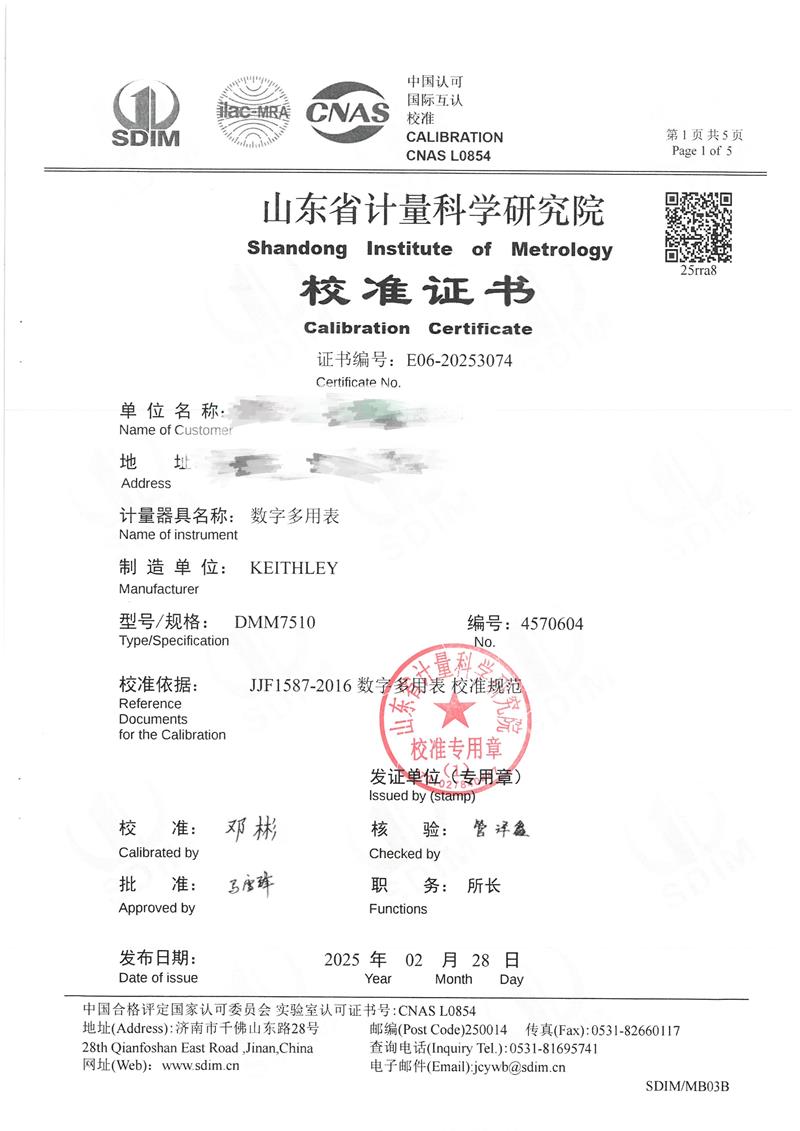 數字多用表校準證書(shū) 2025-3-8 本文被閱讀 3750 次