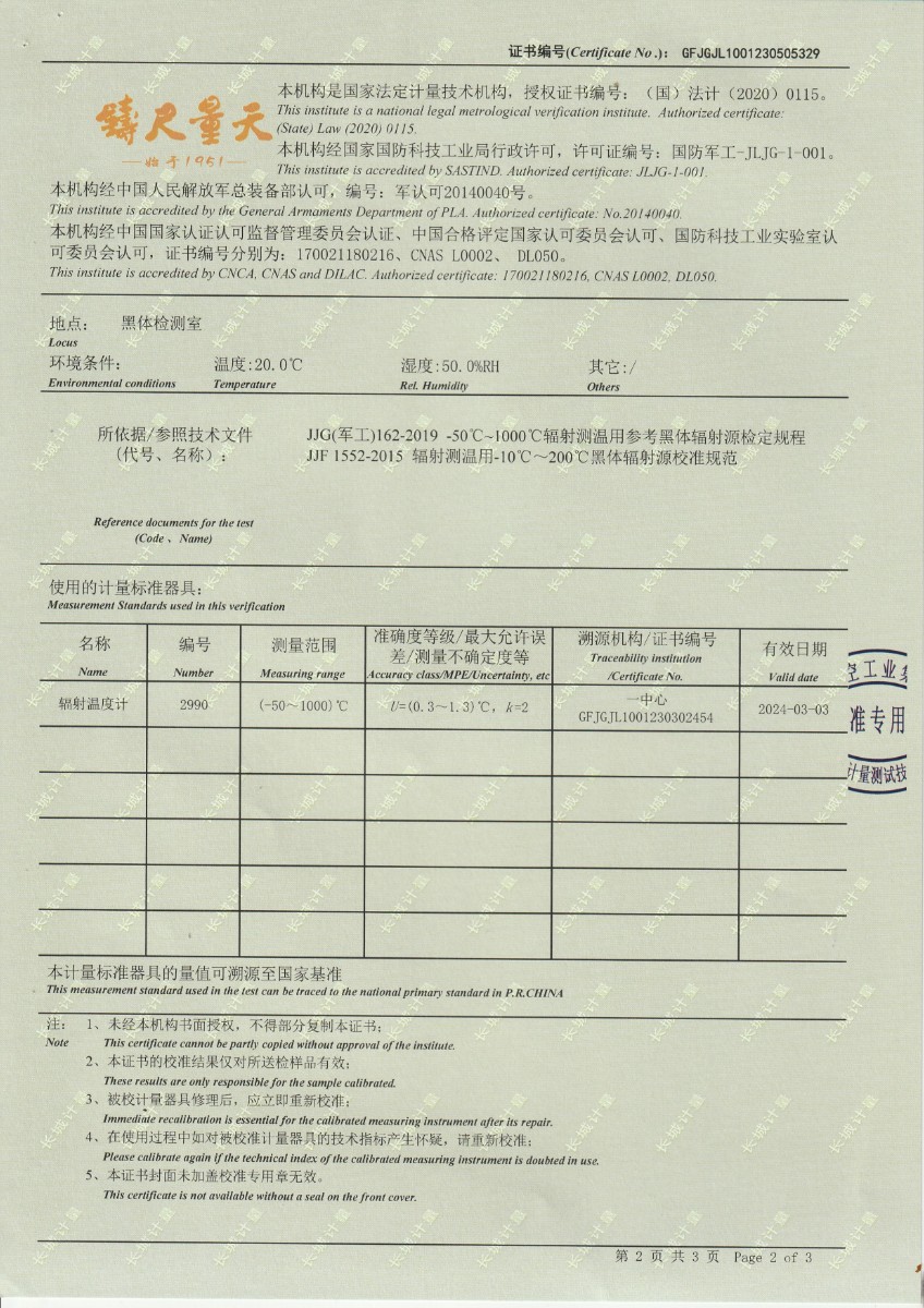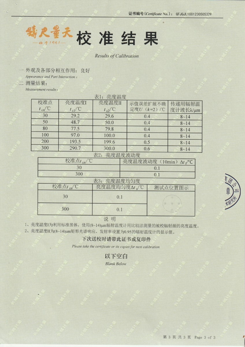 | 上一條:淮安捷泰新能源科技有限公司 黑體輻射源 校準證書(shū) | 下一條:溫濕度檢定箱(-5~65℃)校準證書(shū) |