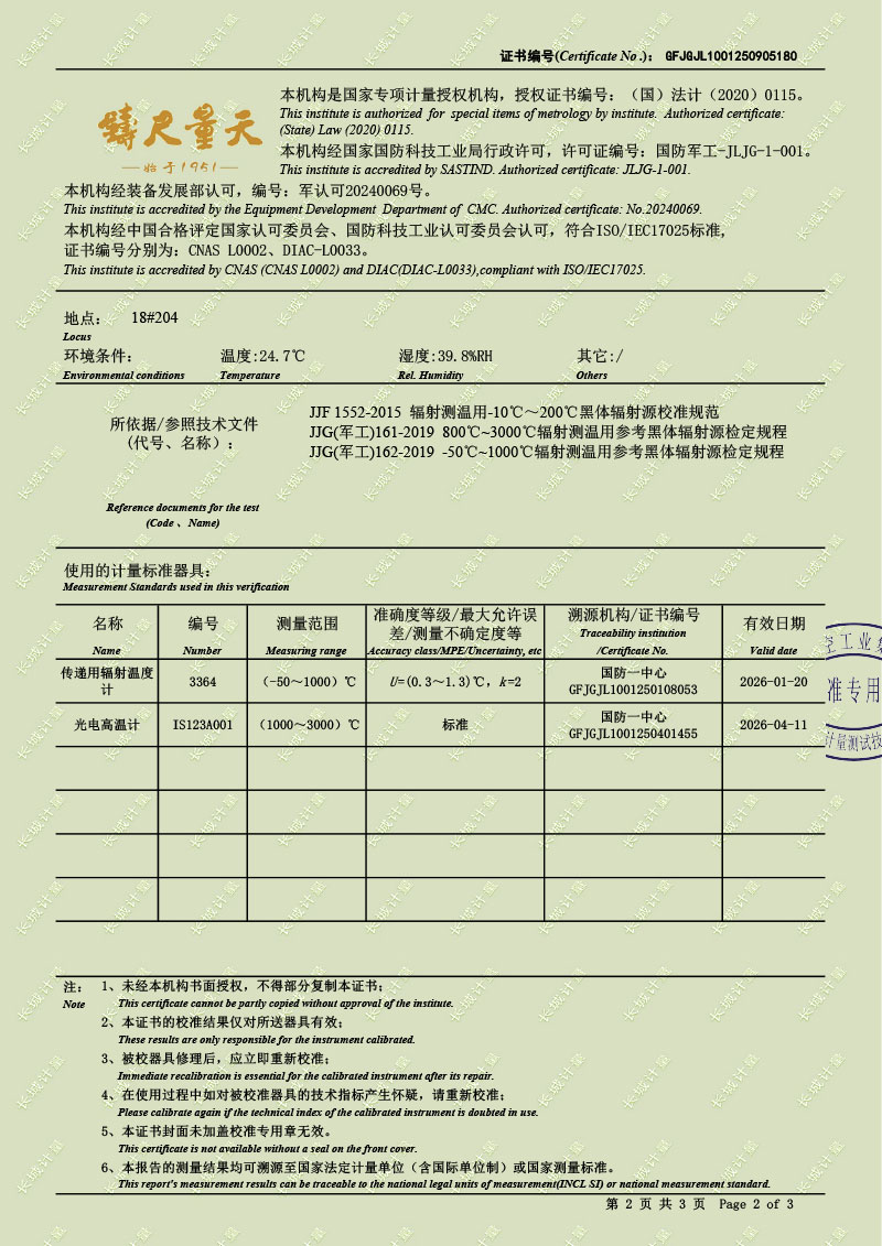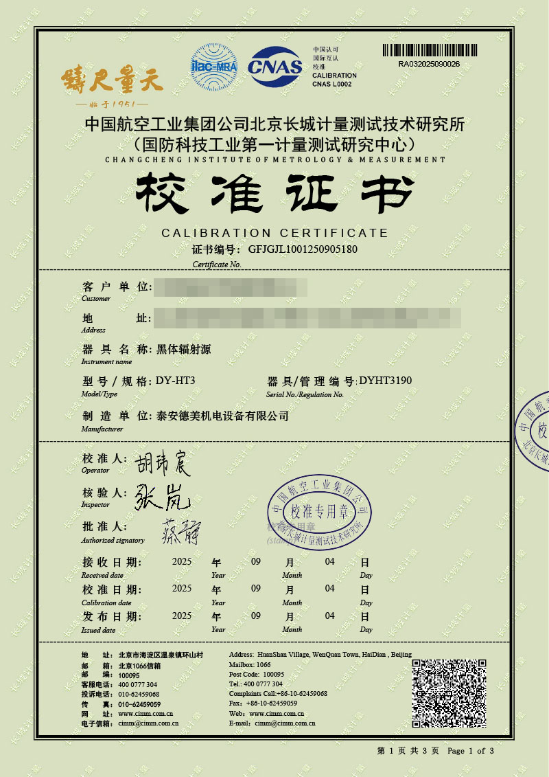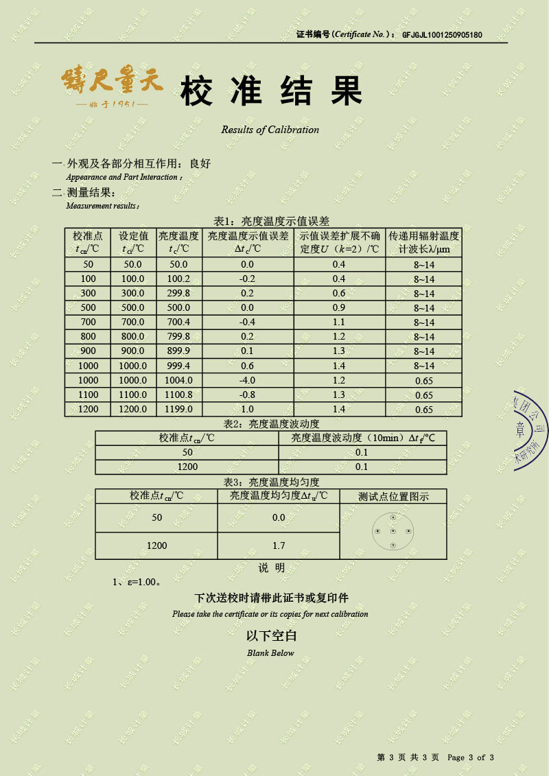 黑體輻射源(50-1200℃)校準證書(shū) 2025-9-22 本文被閱讀 1077 次